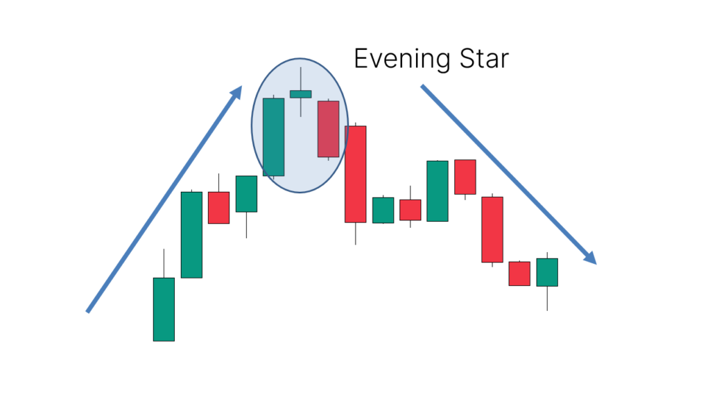 The Evening Star pattern is a bearish reversal pattern that typically forms at the top of an uptrend. It consists of three candlesticks: