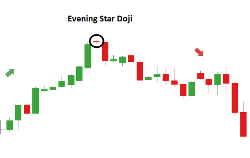 Overall, the evening star is the bearish counterpart to the morning star pattern. See the example below: