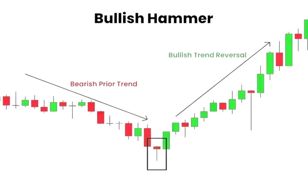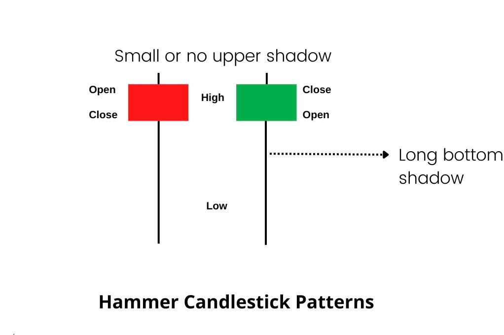 The Hammer candlestick forms when the open, high, and close are roughly at the same price, with a long lower shadow. This long lower shadow signals a bullish rejection, showing that buyers are stepping in and attempting to push the market higher.