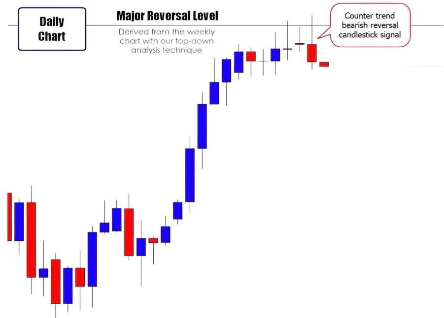 Let me now give you an example to demonstrate the importance of adopting the top-down analysis approach and what can happen if you neglect to consider the bigger timeframes before focusing on your primary chart. Here’s an illustration below: